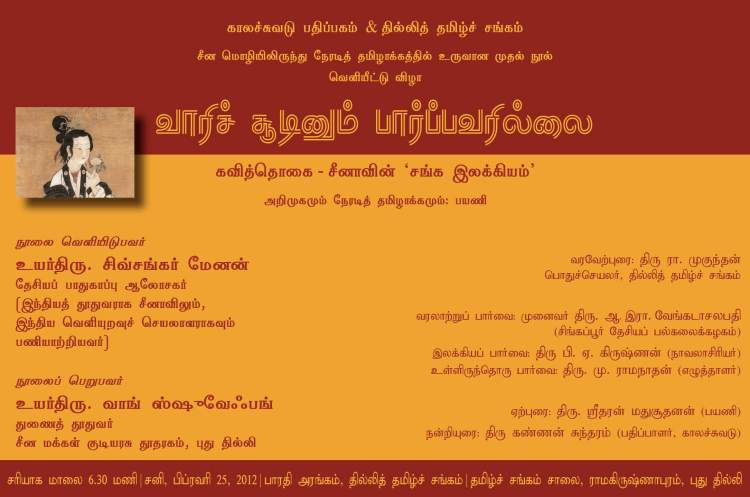 VAARI CHOODINUM PAARPPAVAR ILLAI—Kavithogai, the ‘Sangam Literature’ of China
