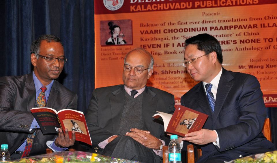 From Hong Kong, Sridharan went to Delhi in 2003 as Under Secretary, and then transferred to Beijing sometime in 2004 as a First Secretary. This was his second tenure in Beijing. During the first tenure, he learnt the language, and during the second tenure he decided to try his hands on Shi Jing, the ancient Chinese poetry. He took private lessons in Chinese from two teachers at Peking University and the Beijing Institute of Economic Management. He formed a weekend discussion group comprising of Antoni Cleetus and Maria Michael who were Tamil Nadu natives working at China Radio International’s Tamil Department in Beijing. Mr Jed Zou and Ms Han Chong, who both did their graduate studies in Tamil and have an interest in Chinese literature, also attended these weekend discussions. Jed Zou‘s Tamil name is Aravindan and Ms Han Chong is christened as Thilakavathi. Sridharan’s wife Vaidehi also supported and participated in the discussions. These six people met on Saturday afternoons. During that time telephone charges between Hong Kong and China were were slashed so much that we thought at some point it might become free. I used the opportunity and called Sridharan from Hong Kong on Sundays, and used to talk with him for hours, discussing many things, and he used to appraise me on the developments of the Shi Jing project.