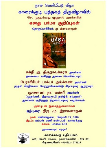 காரைக்குடியில் “எனது பர்மா குறிப்புகள்” வெளியீட்டு விழா